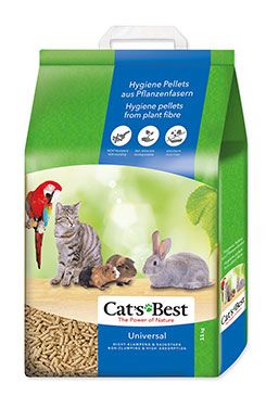Víceúčelová podestýlka pro kočky, hlodavce, malá domácí zvířátka chovaná v kleci a různé ptáky.Podestýlka Cats Best Universal jsou stoprocentně přírodní a biologicky odbouratelné malé oválné paletky, které udrží toaletu nebo klec suchou a bez zápachu.