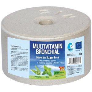 Minerální krmný doplněk pro koně - minerální multivitaminový liz pro koně s éterickými oleji z máty a eukalyptu na uvolnění dýchacích …