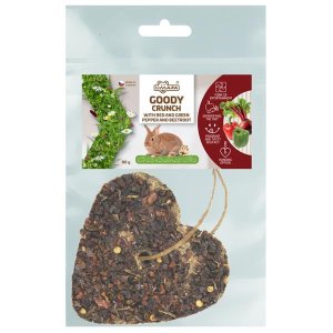Bezobilné zeleninové srdce s červenou řepou a zelenou a červenou paprikou poskytne králíkům a hlodavcům zdravou odměnu, zábavu a příjemné zpestření …