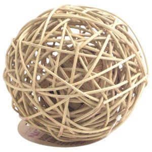 Pletená ratanová koule, uvnitř s kuličkou z listů vodního hyacintu.