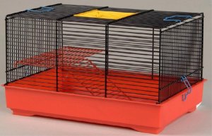 Plastová vícepatrová klec pro syrské křečky a křečíky s vybavením.