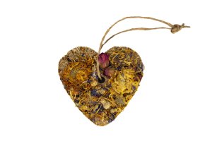 Bezobilné bylinkové srdce s měsíčkem, chrpou a růží.