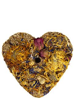 Bezobilné bylinkové srdce s měsíčkem, chrpou a růží.