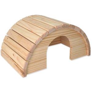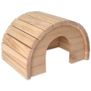 Dřevěný domeček s obloukovitou střechou pro morče, potkana a další drobné hlodavce.