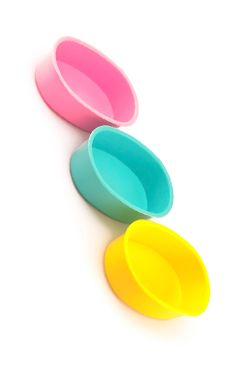 Barevná plastová miska. Velikost 12 x 12 x 4,5 cm.