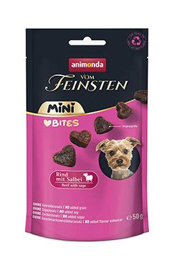 Doplňkové krmivo, pamlsek pro dospělé psy.prvotřídní složení, vysoký podíl masa v obvyklé špičkové kvalitě Vom Feinstentvar drobného srdíčka, s láskou pro mini plemenaideální pro výcvik nebo "jen tak"bez přidaných obilovin, cukru a sójibez přidaných zvýrazňovačů chuti Složení: maso a živočišné deriváty (95 %, 30 % z hovězího masa), minerální látky, šalvěj (0,1 %).Analytické složení: hrubý protein 39 %, obsah tuku 22 %, hrubá vláknina 1,5 %, hrubý popel 10 %, vlhkost 27 %. Doporučené dávkování: Hmotnost psa / Denní množství2 – 4 kg / 4 – 6 ks6 – 8 kg / 9 – 11 ks