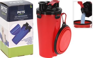 Láhev pro psa 2dílná voda/krmivo, s miskou, PH mix barev. materiál: polypropylen mix barev: červená, modrá rozměry láhve: pr. 12 x 23 cm rozměry misky: pr. 14,4 x 12,8 cm hmotnost misky: 58 g Cestovní …