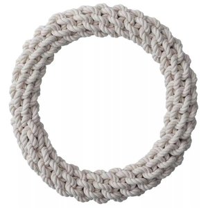Velké bavlněné přetahovadlo pro psy velkých plemen ve tvaru kruhu je spletené z pevných přírodních provázků.