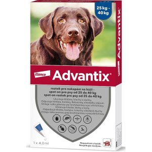 Advantix spot-on od 10kg je vhodný pro plemena psů vážící 10-25 kg (1 pipeta).