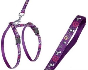 Pohodlný fialový postroj s vodítkem pro koťata z nylonu.