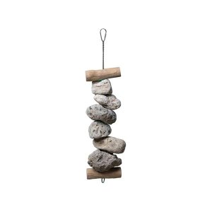 Závěsná hračka pro střední a velké papoušky je vyrobena z lávového kamene a dřeva kávovníku.