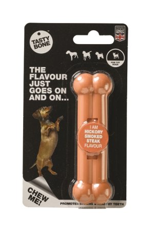 Opravdu chutná kost. Stejně jako všechny nylonové pamlsky TastyBone i tento byl testován na těch nejenergičtějších mlsounech.