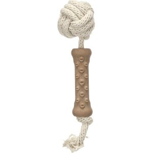 Hračka pro psy ve tvaru tyčky je vyrobená z termoplastické gumy (TPR) s bambusovým vláknem a provazu, který je na jednom konci zauzlovaný do tvaru …