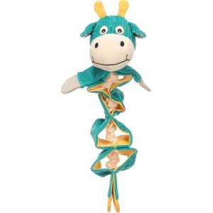 Plyšová hračka pro psy ve tvaru žirafy s natahovacím tělem je vyrobená z plyše a manšestru.