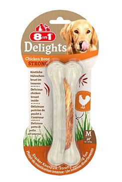 Extra pevné žvýkací kostičky 8in1 Delights Strong dlouho vydrží.