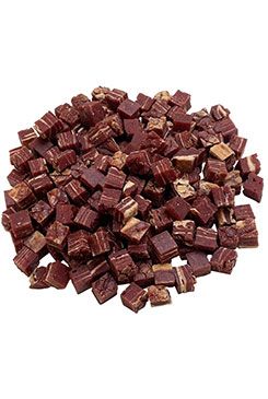 Masová pochoutka pro psy, hovězí kostky. Složení: 60,5% hovězí, 10% treska, 10% škrob, 10% glycerin, 1% rost. protein, 8% sorbitol, 0,5% sůlAnalytické složky: 20% hrubý protein, 9% hrubý tuk, 5% hrubý popel, 1% hrubá vláknina, 23% vlhkost Zajistěte zvířeti pitnou vodu.