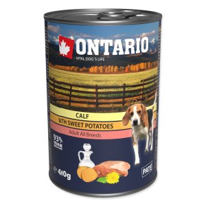 Konzerva s obsahem telecího masa, sladkých brambor, pampeliškového a lněného oleje.
