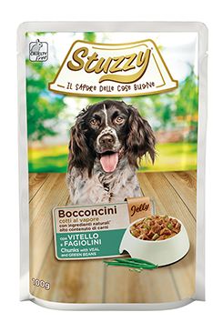 Kapsička pro psy Stuzzy Dog Adult je plná kousků masa vařeného v páře v lahodném želé.kompletní krmivo s vysokým obsahem masamaso vařené v páře kousky masa v želévýborná chuť Složení: 45 % maso a masné výrobky* (8 % telecí), zelenina* (4 % zelené fazolky), vedlejší produkty rostlinného původu* (0,4 % inulin z čekanky), minerální látkyAnalytické složky: bílkoviny 7 %, hrubá vláknina 0,3 %, hrubý tuk 4 %, hrubý popel 1,5 %.