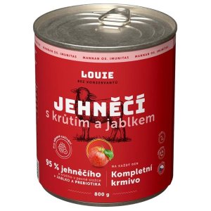 Šťavnaté kompletní krmivo v konzervě obsahuje 95 % jehněčího a krůtího masa v pevné složce.