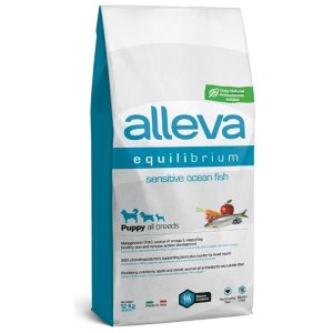 Bezlepkové krmivo Alleva Equilibrium Sensitive Ocean Fish je kompletní a vyvážená receptura pro štěňata všech plemen a březí a kojící feny …