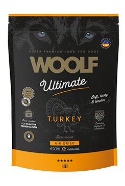 Kompletní polovlhké krmivo pro dospělé psy, které obsahuje čerstvé krůtí maso.