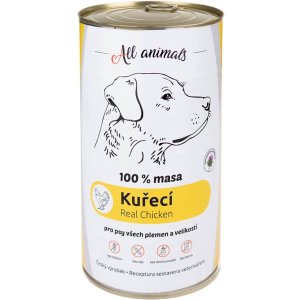 Masová konzerva pro psy s obsahem 95 % hrubě namletého kuřete a s 5 % rýže bez přidané želatiny, konzervantů, dochucovadel, barviv či stabilizátorů.