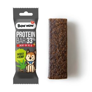Proteinová tyčinka s hmyzím proteinem a konopím pro psy.