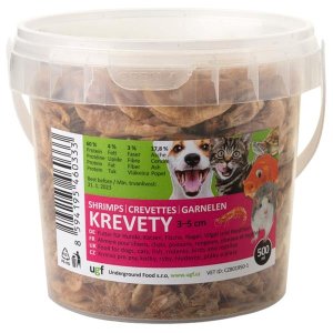 Krevety jsou doplňkovým krmením určeným pro psy, kočky, plazy, ryby (zejména KOI kapry), ptáky a hlodavce.