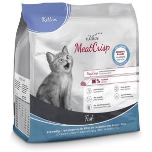 Kompletní suché krmivo Platinum MeatCrisp pro koťata a dospívající kočky obsahuje 86 % čerstvého rybího masa – lososa – připravovaného …