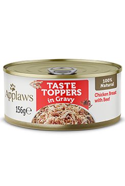 Konzerva kuře s hovězím masem v lahodné omáčce z řady Taste Toppers nabízí doplňkové krmivo pro dospělé psy pouze z přírodních surovin.