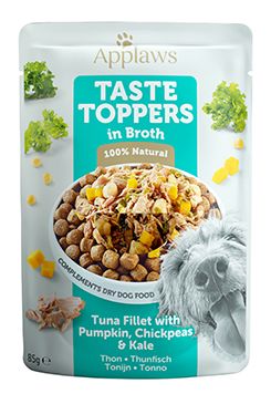 Kapsička pro psy, tuňák s dýní, cizrnou a kapustičkou v jemné omáčce, geniální pochoutka pro milovníky ryb. Applaws Taste Toppers nabízí lahodné doplňkové krmivo pro psy.