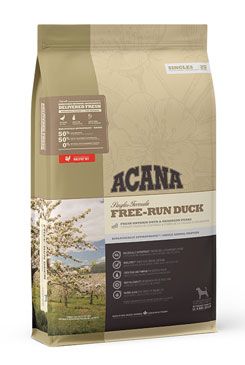 Krmivo s jediným zdrojem živočišného proteinu ACANA FREE-RUN DUCK obsahuje 50 % volně chovaných kachen, které jsou nám dodávané čerstvé v podílu celé kořisti.