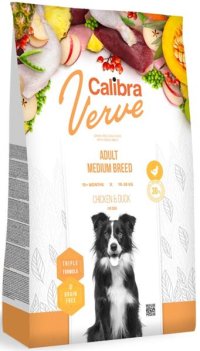 Calibra Dog Verve Adult Medium Breed (Chicken & Duck) je kompletní suché krmivo s čerstvým masem a bez obilovin.