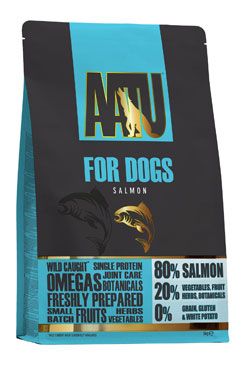 AATU Losos – (Salmon)Kompletní krmivo pro dospělé psy SLOŽENÍ: 80 % losos (z toho 61 % čerstvě připravený losos, 17 % sušený losos, 2 % čerstvě připravená šťáva z lososa), hrách (6 %), tapioka, lososový olej (4 %), jablko (2 %), cizrna, batáty, slunečnicový olej, minerály, ovocná a bylinková směs (brusinka, hruška, borůvka, moruše, mrkev, rajčata, čekanka, petržel, máta peprná, spirulina, mořské řasy, oregano, šalvěj, majoránka, tymián, heřmánek, šípky, kopřiva dvoudomá, juka, měsíček, anýz, pískavice, skořice, 0,04 %),glukosamin 178 mg/kg, methylsulfonylmethan 178 mg/kg,chondroitin sulfát 125 mg/kg. ANALYTICKÉ SLOŽKY: Bílkoviny 31 %, obsah tuku 20 %, hrubá vláknina 2,5 %, hrubý popel 9 %, omega 3 – 3 %, omega 6 – 2,5 %. DOPLŇKY (NA 1 KG): Vitamíny: vitamin A 18000 IU, vitamin E 200 mg. STOPOVÉ PRVKY: zinek (chelát zinku jako hydrát aminokyselin) 65 mg, železo (aminokyselinový chelát dvojmocného železa, hydrát) 60 mg, měď (aminokyselinový chelát dvojmocné mědi, hydrát) 7 mg, mangan (aminokyselinový chelát manganu, hydrát) 6 mg, jód (jodid draselný) 1,5 mg.TECHNOLOGICKÉ DOPLŇKY: Antioxidanty: tokoferolové výtažky z rostlinných olejů. ZOOTECHNICKÉ DOPLŇKY: probiotikum Enterococcus faecium (DSM 10663 NCIMB 10415) 3,5 x 1010 KTJ/kg. DÁVKOVÁNÍ: