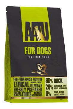 AATU Kachna – (Duck)Kompletní krmivo pro dospělé psy SLOŽENÍ: 80 % kachna (z toho 65 % čerstvě připravená kachna, 12 % sušená kachna, 2 % čerstvě připravená kachna, 1 % kachní tuk), hrách (10,5 %), batáty (3 %), cizrna (1,8 %), tapioka, minerály, zeleninová omáčka (0,5 %), jablko, lososový olej (0,4 %) ovocná a bylinková směs (brusinky, hruška, borůvka, moruše, mrkev, rajčata, čekanka, petržel, máta peprná, spirulina, mořské řasy, oregano, šalvěj, majoránka, tymián, heřmánek, šípky, kopřiva dvoudomá, juka, měsíček, anýz, pískavice, skořice, 0,04 %)glukosamin (178 mg/kg), methylsulfonylmethan 178 mg/kg, chondroitin-sulfát 125 mg/kg. ANALYTICKÉ SLOŽKY: Bílkoviny 33 %, obsah tuku 19 %, hrubá vláknina 2,8 %, hrubý popel 9 %, vlhkost 8 %, omega 3 – 0,65 %, omega 6 – 2,4%. DOPLŇKY (NA 1 KG): Vitamíny : vitamín A 18000 IU, vitamín D3 1400 IU, vitamín E 200 mg, L-karnitin 200 mg. STOPOVÉ PRVKY: zinek (chelát zinku jako hydrát aminokyselin) 100 mg, železo(aminokyselinový chelát dvojmocného železa, hydrát) 60 mg, měď (aminokyselinový chelát dvojmocné mědi, hydrát) 7 mg,mangan (aminokyselinový chelát manganu, hydrát) 6 mg, jód (jodid draselný) 1,5 mg, selen (jako selenizované kvasinky Saccharomyces cerevisiae CNCM I-3060, inaktivované, preparát z organického selenu) 0,05 mg. TECHNOLOGICKÉ DOPLŇKY: Antioxidanty: tokoferolové výtažky z rostlinných olejů. ZOOTECHNICKÉ DOPLŇKY: probiotikum Enterococcus faecium (DSM 10663 NCIMB 10415) 3,5 x 1010 KTJ/kg. DÁVKOVÁNÍ: