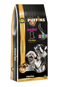 Kompletní premiové krmivo s masovými polštářky pro štěňata středních a malých plemen. SLOŽENÍ:Kuře 38% (dehydrované kuřecí maso, čerstvé maso, drůbeží moučka), pšenice, rýže, jemně mletá kukuřice, sušené cukrovkové řízky, drůbeží tuk, rybí moučka, sušené kvasnice, sušené jablečné výlisky, jehněčí moučka, bramborové vločky, pšeničné klíčky, vejce, lososový olej, slunečnicový olej, jogurt, sušená rajčata, yucca, hydrogenfosforečnan vápenatý monohydrát, uhličitan vápenatý, chondroitin, glukosamin.