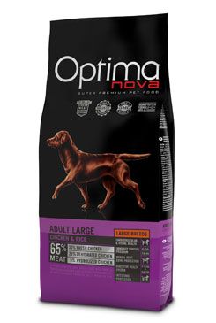 Přírodní superprémiové krmivo pro dospělé psy velkých plemen.OPTIMAnova Dog Adult Large Chicken & Rice složené z kvalitních bílkovin a lehce stravitelných sacharidů v kombinaci s prospěšnými tuky.