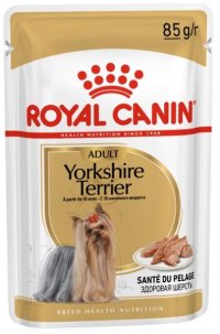 Kompletní mokré krmivo pro dospělé a stárnoucí psy plemene jorkšírský teriér.