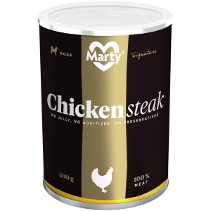 MARTY DeLuxe konzerva - kuřecí steak: Jednosložková krmná surovina pro psy ve formě kusů kuřecího masa (steaky) nabízí psovi možnost stravy z čistého …