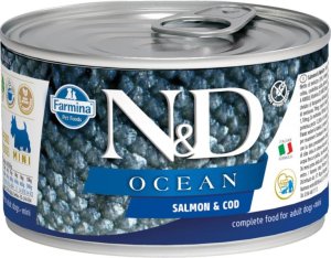 Konzerva s masem z kuřecích prsou, masem z lososa a zeleninou.