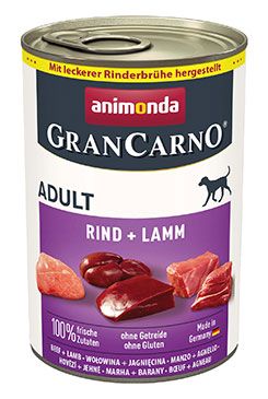Animonda GranCarno Adultoptimálně vyvážené a chutné krmivo pro dospělého psa ve věku 1–6 letvyrobeno z čerstvého masa a vnitřností - s viditelnými masovými kouskyvynikající masová chuť - nefalšovaný požitekbez obilovin, bez lepku, bez sóji, bez cukrubez umělých barviv a konzervačních látekSložení: 52 % vepřového masa (srdce, játra, plíce, maso), 29 % vývar z lososa, 12 % losos, 4 % špenát, minerální látky, světlicový olejAnalytické složky: protein 10,5 %, obsah tuku 5 %, vláknina 0,4 %, popel 2,5 %, vlhkost 79 %Nutriční doplňkové látky (kg): 200 IU vitaminu D3, 1,4 mg monohydrát síranu manganatého, 25 mg síranu zinečnatého, monohydrátu, 0,5 mg síranu měďnatého(II) pentahydrátuHmotnost: 400 g