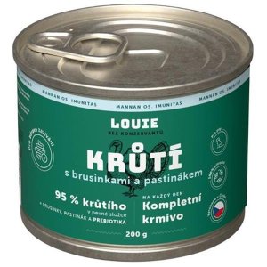 Šťavnaté kompletní krmivo v konzervě obsahuje 95 % krůtího v pevné složce.