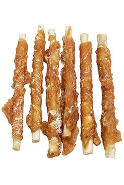 Masová pochoutka pro psy, tyčinka z buvolí kůže s kuřecím masem. Složení: 60,8% kuře, 22% kůže, 4% škrob, 2% sorbitol, 6% glycerin, 5% rost.protein, 0,2% sůlAnalytické složky: 55% hrubý protein, 4% hrubý tuk, 6% hrubý popel, 1% hrubá vláknina, 18% vlhkost Zajistěte zvířeti pitnou vodu.