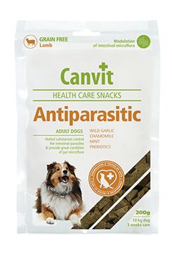 Canvit Snacks Antiparasitic pro psy je podpora zdravého zažívání ve formě chutného pamlsku.