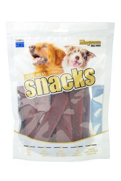 Doplňkové krmivo pro psy a kočky vyrobené ze 100% čerstvého masa, bez chemických konzervantů. Složení: Kachní maso 70%, kukuřičný škrob 12%, mouka 9%, calcium laktát 2%, glycerin 4%, přírodní sladidlo (maltitol) 0,8%, ocet 0,1%, zeleninový protein 2%, jedlá guma 0,1% Jakostní znaky: vlhkost 18%, hrubý protein 25%, obsah tuku 1%, hrubá vláknina 1% Krmný návod: Podávejte jako příležitostný pamlsek.