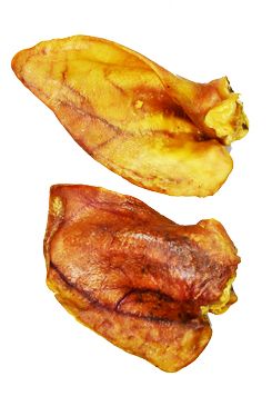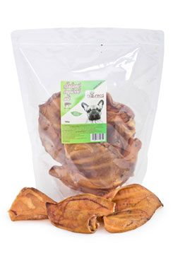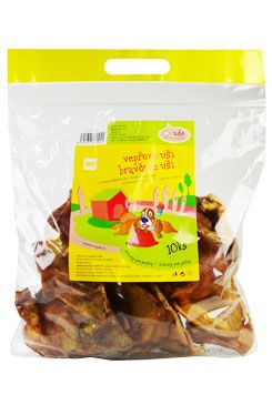 Charakteristika: Nebělené, přirozeně sušené vepřové uši, které se suší umělým teplem, bez kouře. Nejde jen o pochoutku pro psa, jedná se o vynikající zdroj přírodního kolagenu, vápníku a proteinu z čisté chrupavky. Vhodné pro všechna plemena psů jako ideální pochoutka a přirozená zábava mezi krmeními. Sušené vepřové ucho je velmi houževnaté, jeho kousáním si posiluje pes žvýkací svalstvo a čistí tak částečně i zuby.