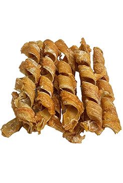 Masová pochoutka pro psy, spirály z vepřové kůže s kuřecím masem. Složení: 47,3% kuře, 40% vepřová kůže, 3% škrob, 4% glycerin, 4% rost.protein, 1,5% sorbit, 0,2% sůlAnalytické složky: 60% hrubý protein, 4% hrubý tuk, 6% hrubý popel, 3% hrubá vláknina, 18% vlhkost Zajistěte zvířeti pitnou vodu.