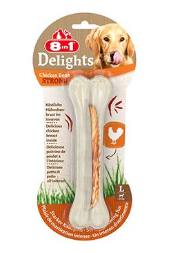 Extra pevné žvýkací kostičky 8in1 Delights Strong dlouho vydrží.