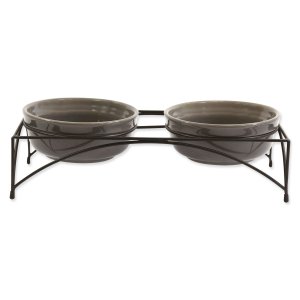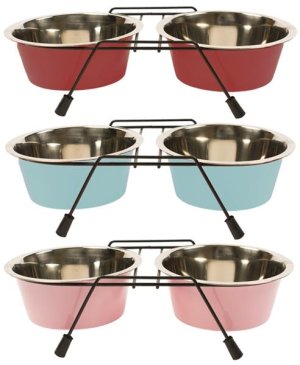 Dvojitá nerezová miska v praktickém stojánku.