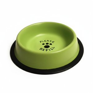 Miska nerez pastelově zelená potisk dna 0,76 lPastelově zelená nerezová miska s nápisem na dně.